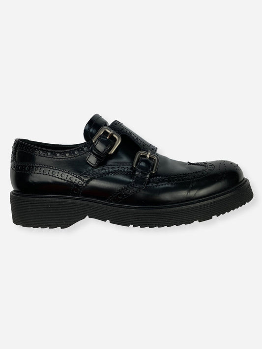 PRADA LINEA ROSSA MONKSTRAP LEATHER DERBYS. (40 1/2)