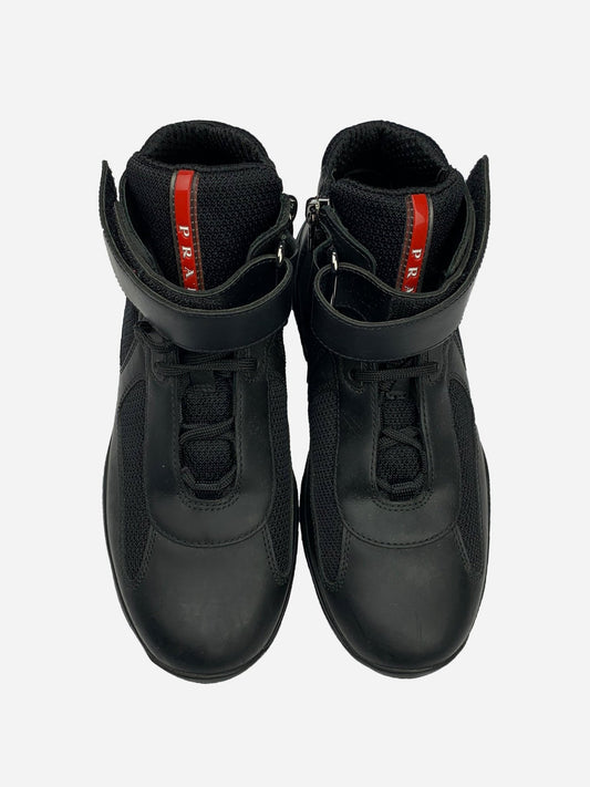 PRADA MILANO AMERICA'S CUP HIGH TOP LEATHER SNEAKER. (36)