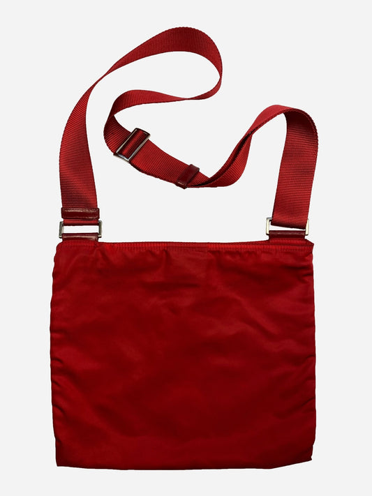 sold out.PRADA MILANO RED NYLON 'VELA' SLINGBAG.