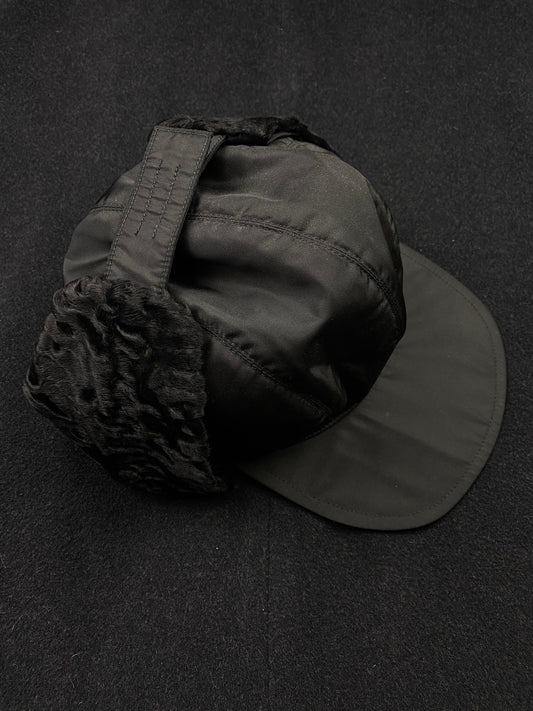 PRADA MILANO F/W 1998 LAMB FUR NYLON TRAPPER HAT.