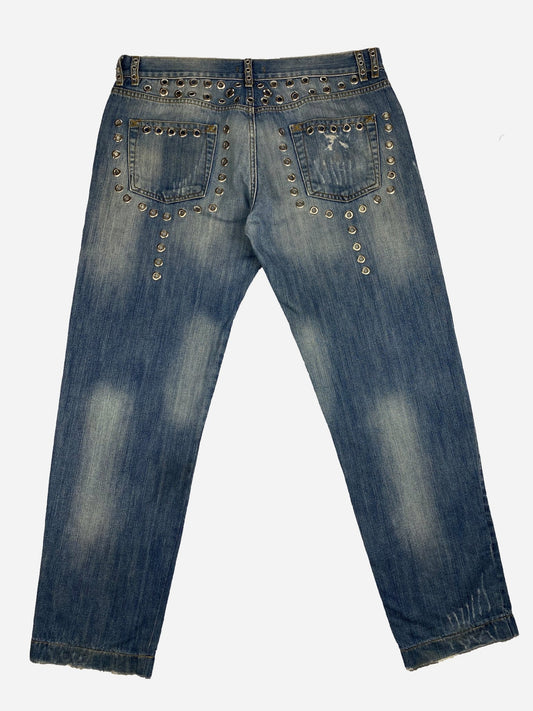 DOLCE & GABBANA ARCHIVE STUDDED 'STARS' DISTRESSED DENIM. (54 / L)