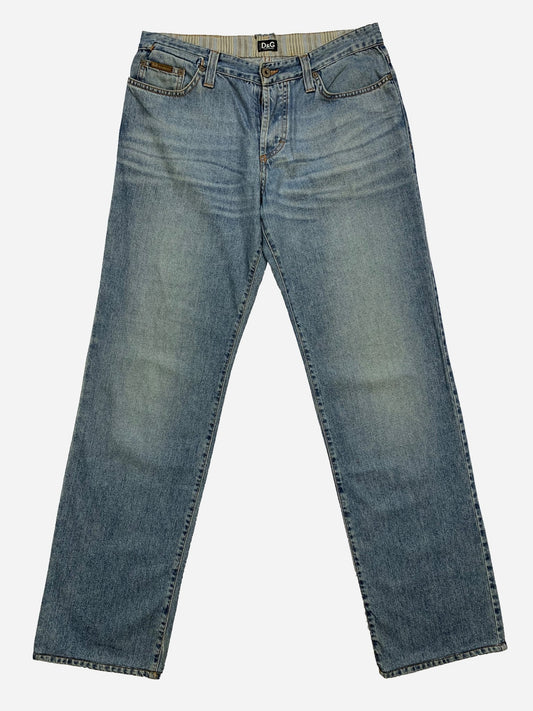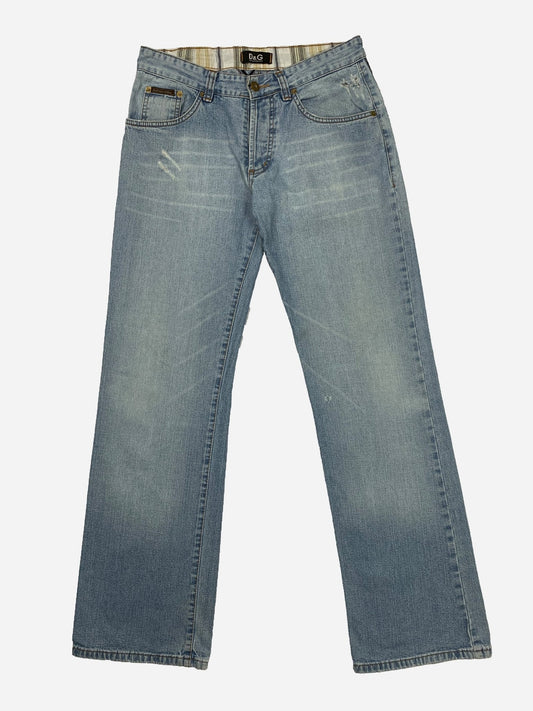 DOLCE & GABBANA 'D&G' EMBROIDERY LIGHT WASH FLARED DENIM. (30 / 32)