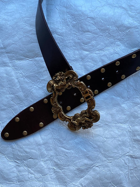 DOLCE & GABBANA RENAISSANCE BUCKLE STUDDED LEATHER BELT. (85 / 34)