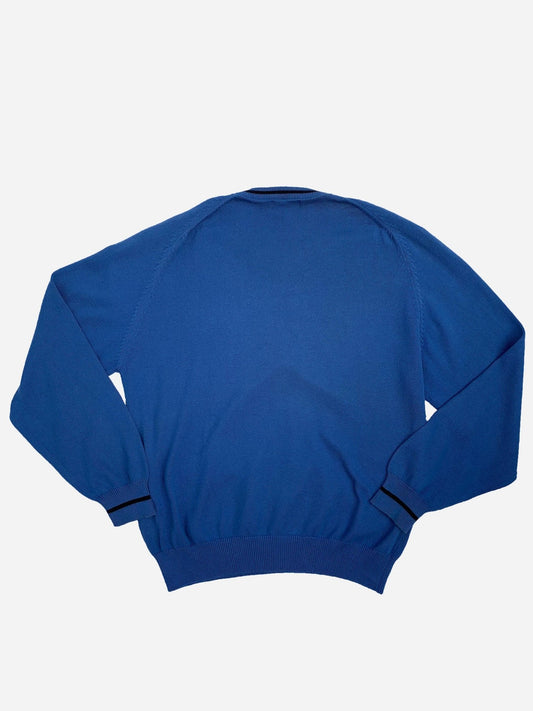 YVES SAINT LAURENT V-NECK LOGO JUMPER BLUE. (L)