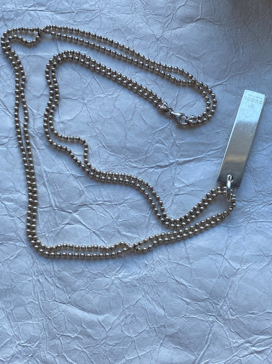 GUCCI DOG-TAG PENDANT BEADED CHAIN NECKLACE.