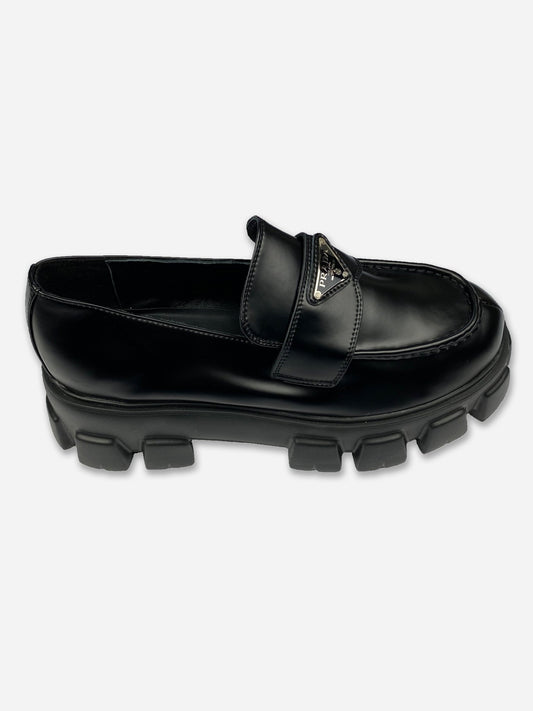 PRADA MILANO BRUSHED LEATHER MONOLITH LOAFERS. (44)