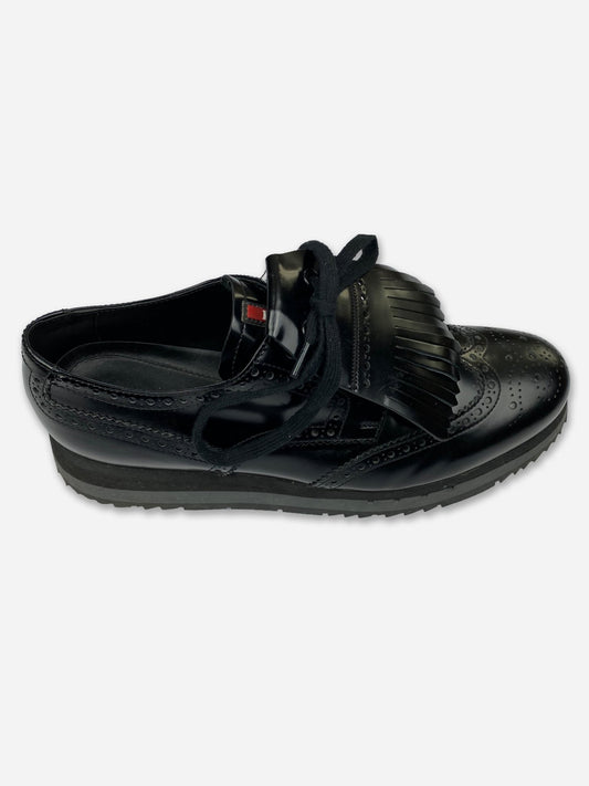 PRADA MILANO BRUSHED LEATHER TASSEL BROGUES. (42)