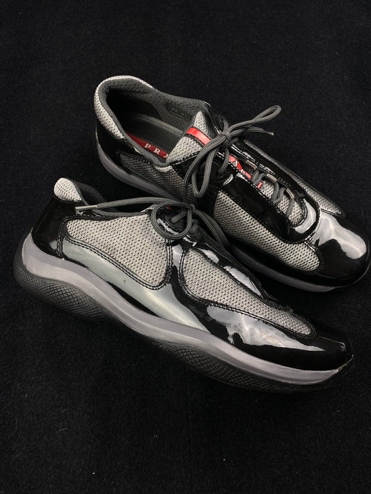 PRADA MILANO AMERICA'S CUP PATENT LEATHER SNEAKER. (40)