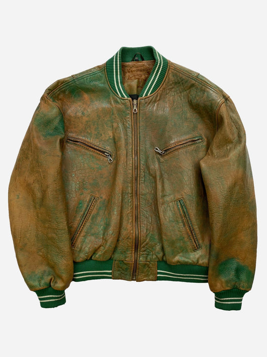 VINTAGE 1990's WORN OUT LEATHER JACKET. (XL)
