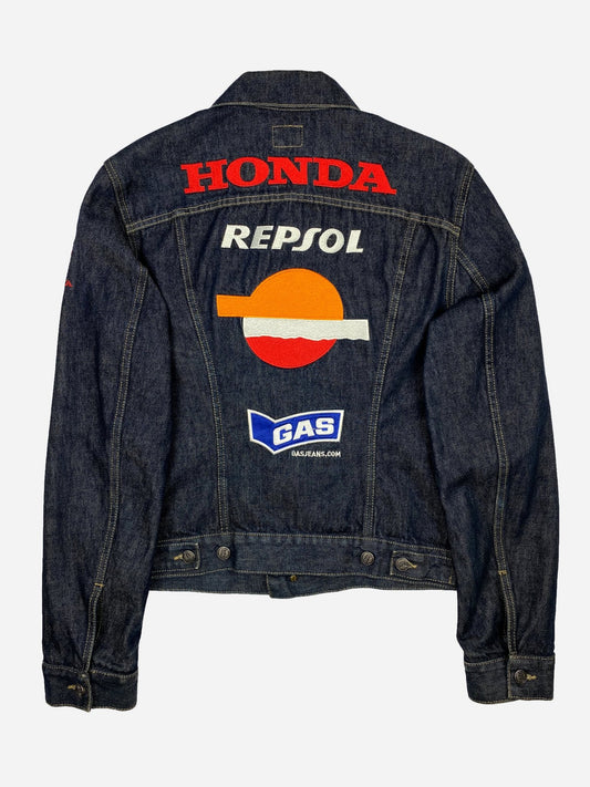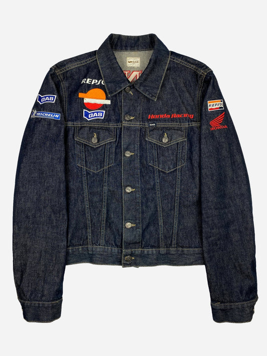 VINTAGE HONDA RACING PATCHWORK DENIM JACKET. (M)