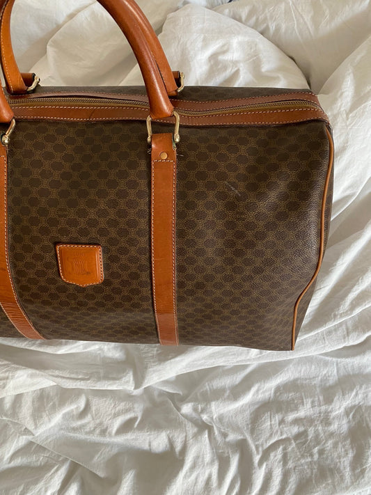 CÉLINE PARIS MACADAM MONOGRAM WEEKENDER DUFFLE BAG.