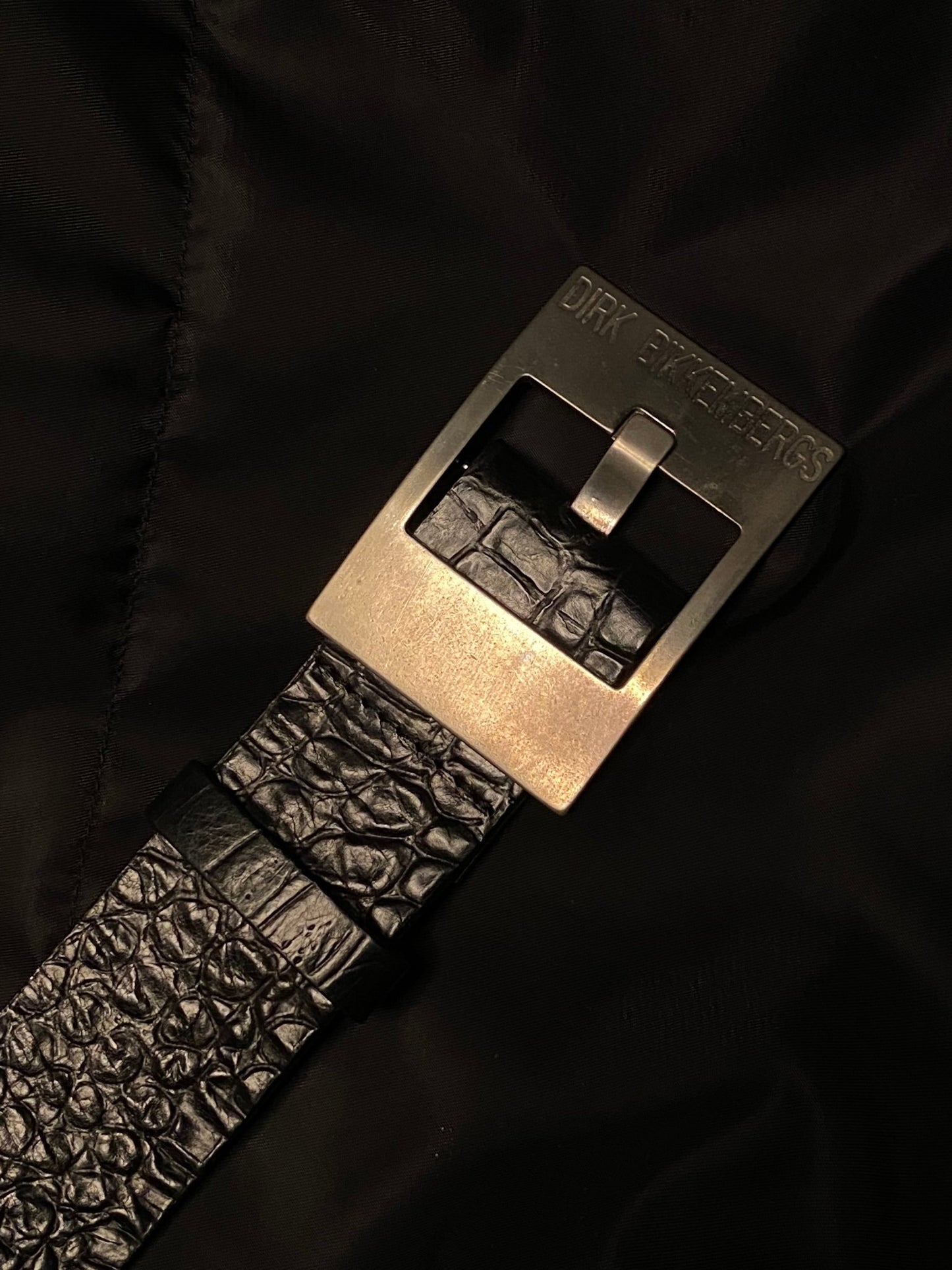 beautiful black crocodile leather belt by belgian avant-garde designer dirk bikkembergs – a pinnacle of opulence and refinement, meticulously crafted to redefine your accessory collection.