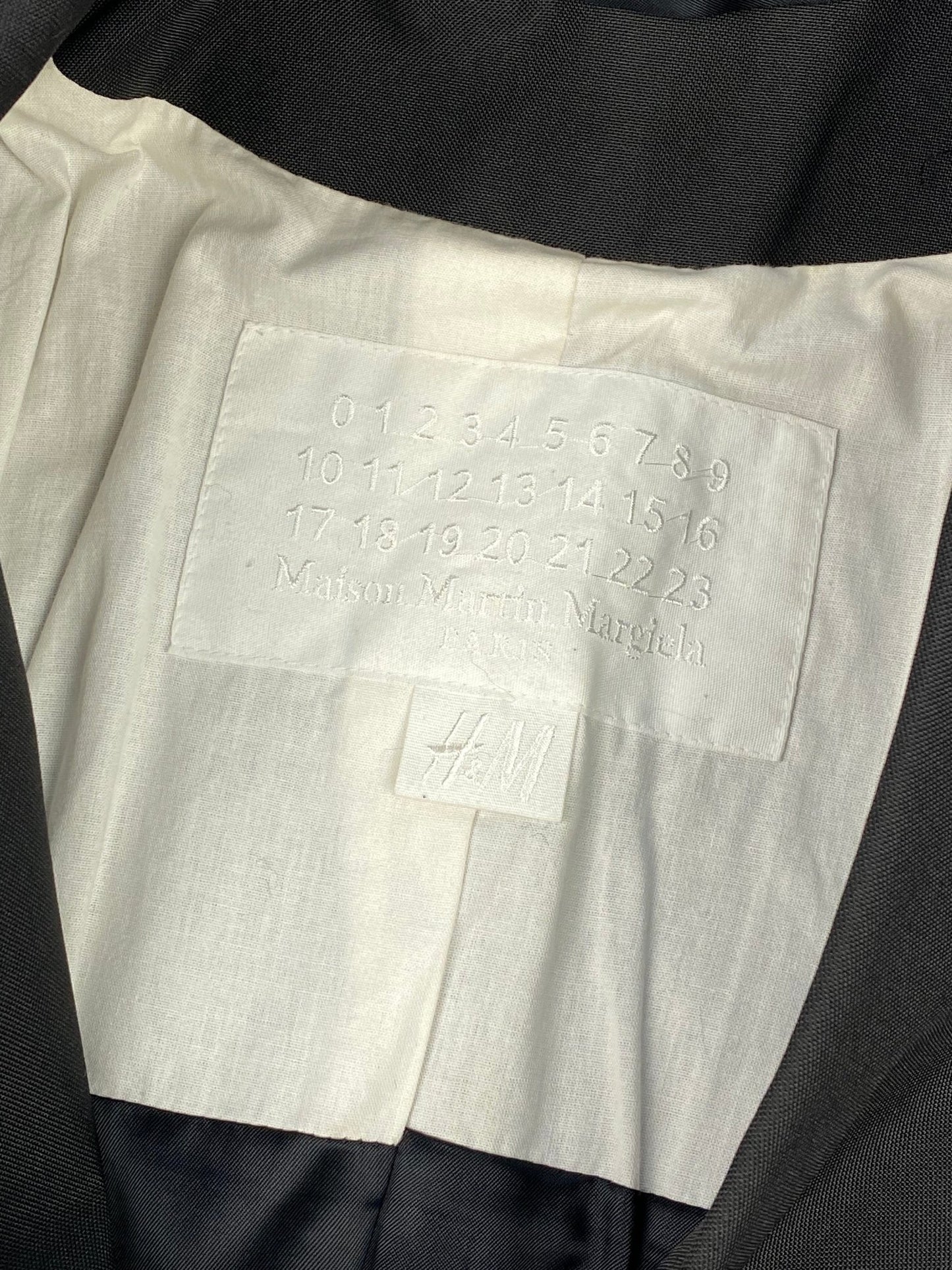 beautiful, double-breasted black blazer from french luxury label maison margiela in collaboration with h&m from their 2012 collection.