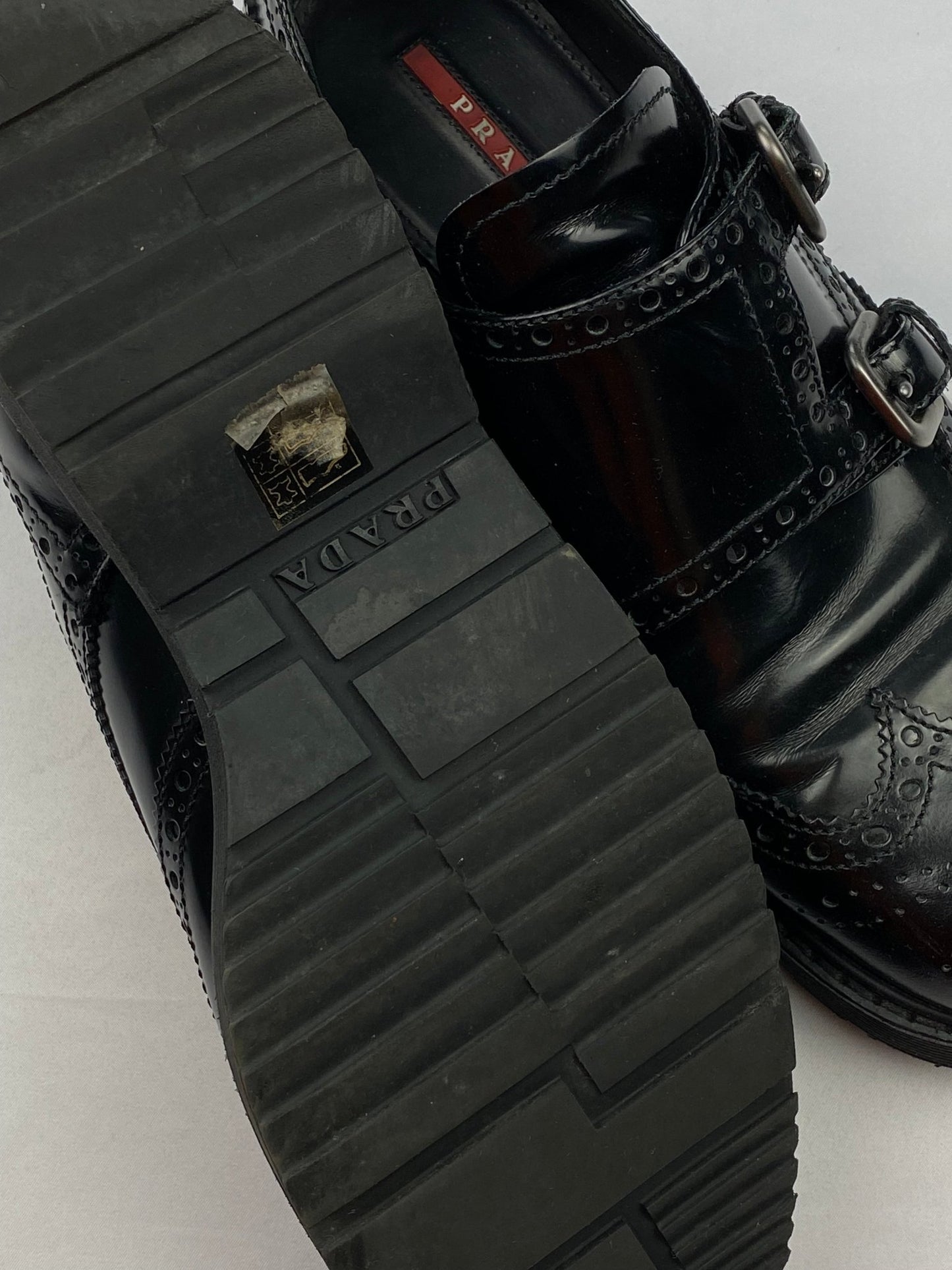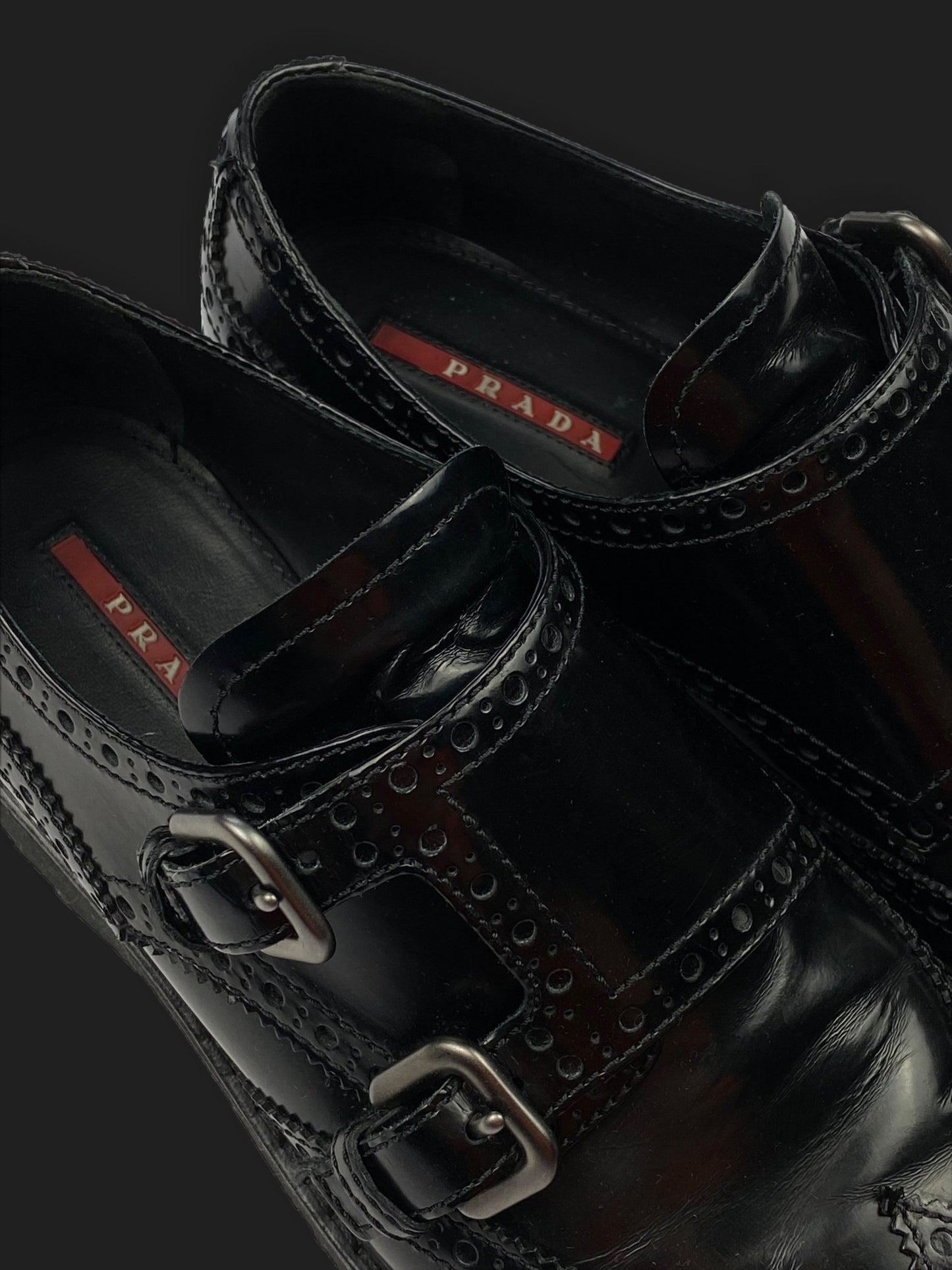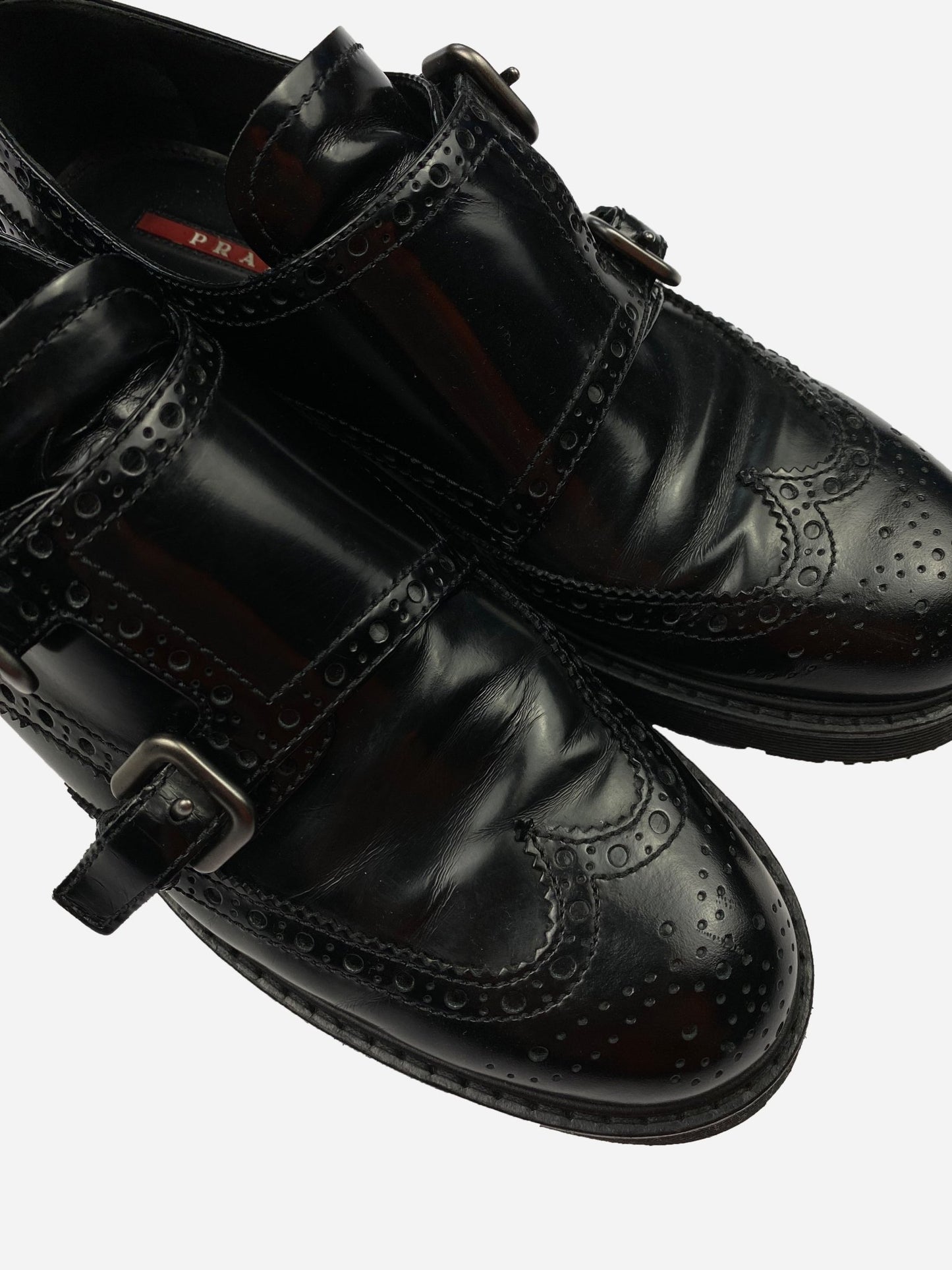 PRADA LINEA ROSSA MONKSTRAP LEATHER DERBYS. (40 1/2)