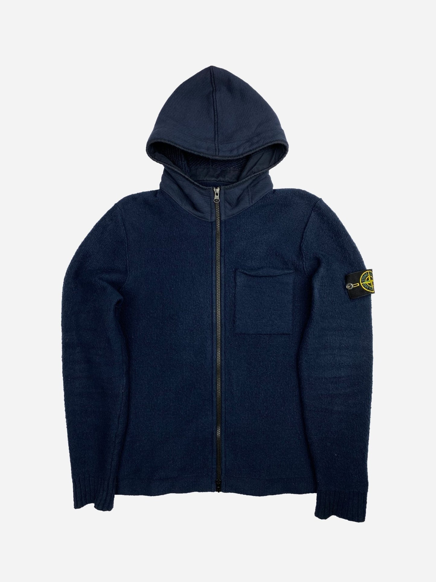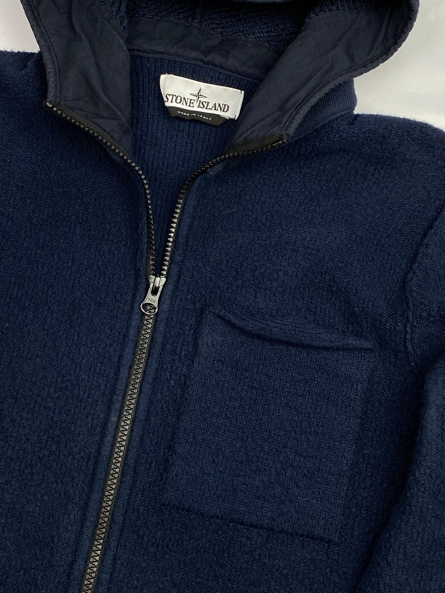 STONE ISLAND HOODED FLEECE ZIP-UP JACKET. (M)