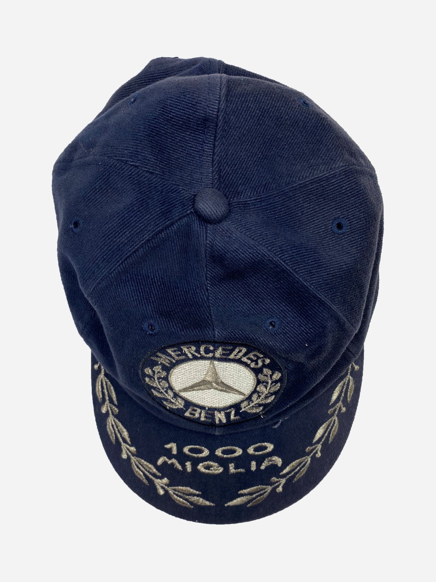 beautiful navy blue vintage cap from one of the early 2000's mille miglia events by mercedes benz.
